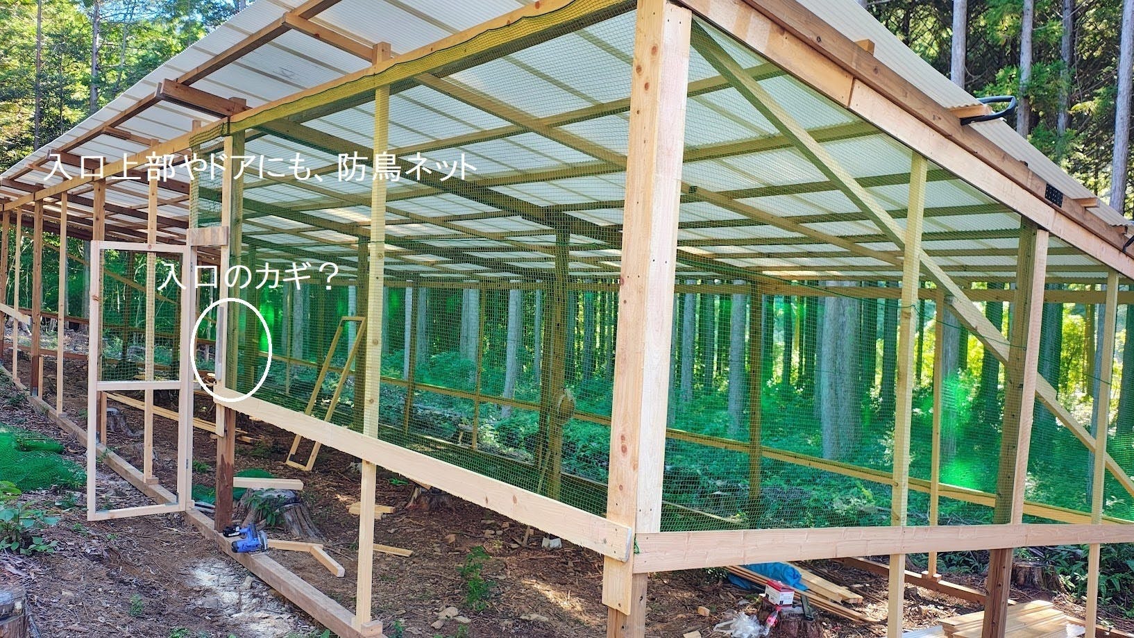 閂式のカギ?をつけて1つめの鶏舎の入り口の完成~!