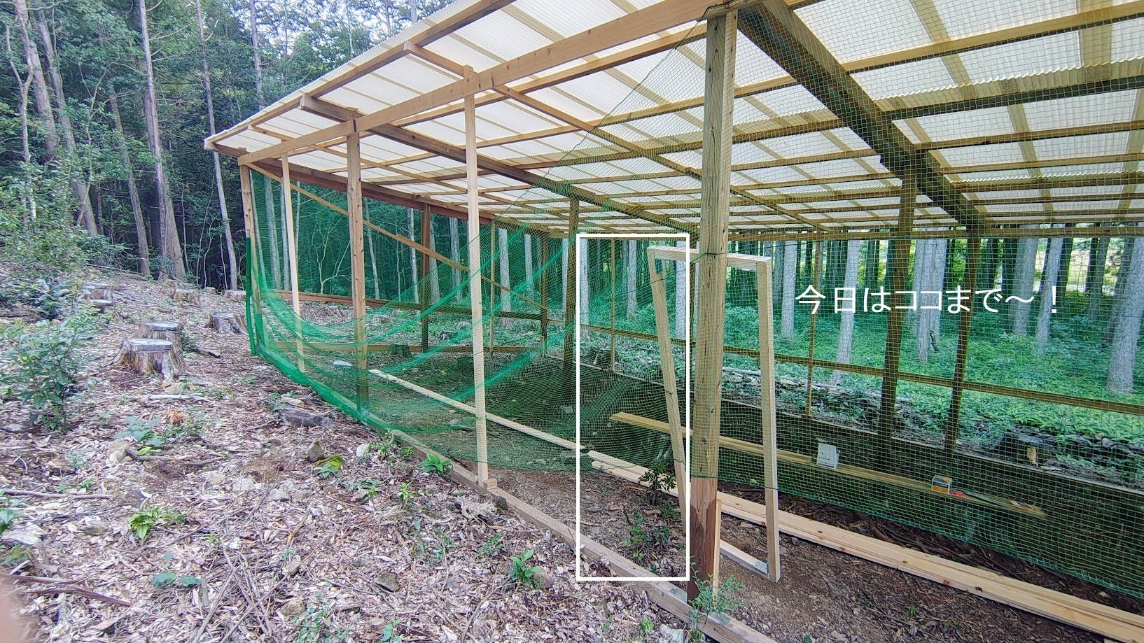 防鳥ネットを張った箇所から入口を作ります。