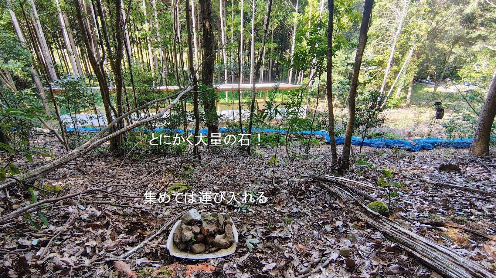 山に登っては、石を集め・運び入れる!