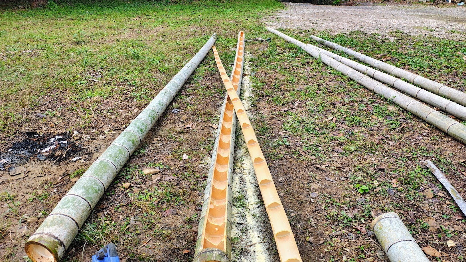 不要になった葉っぱのある上部の竹や、枯れた竹を切っては、