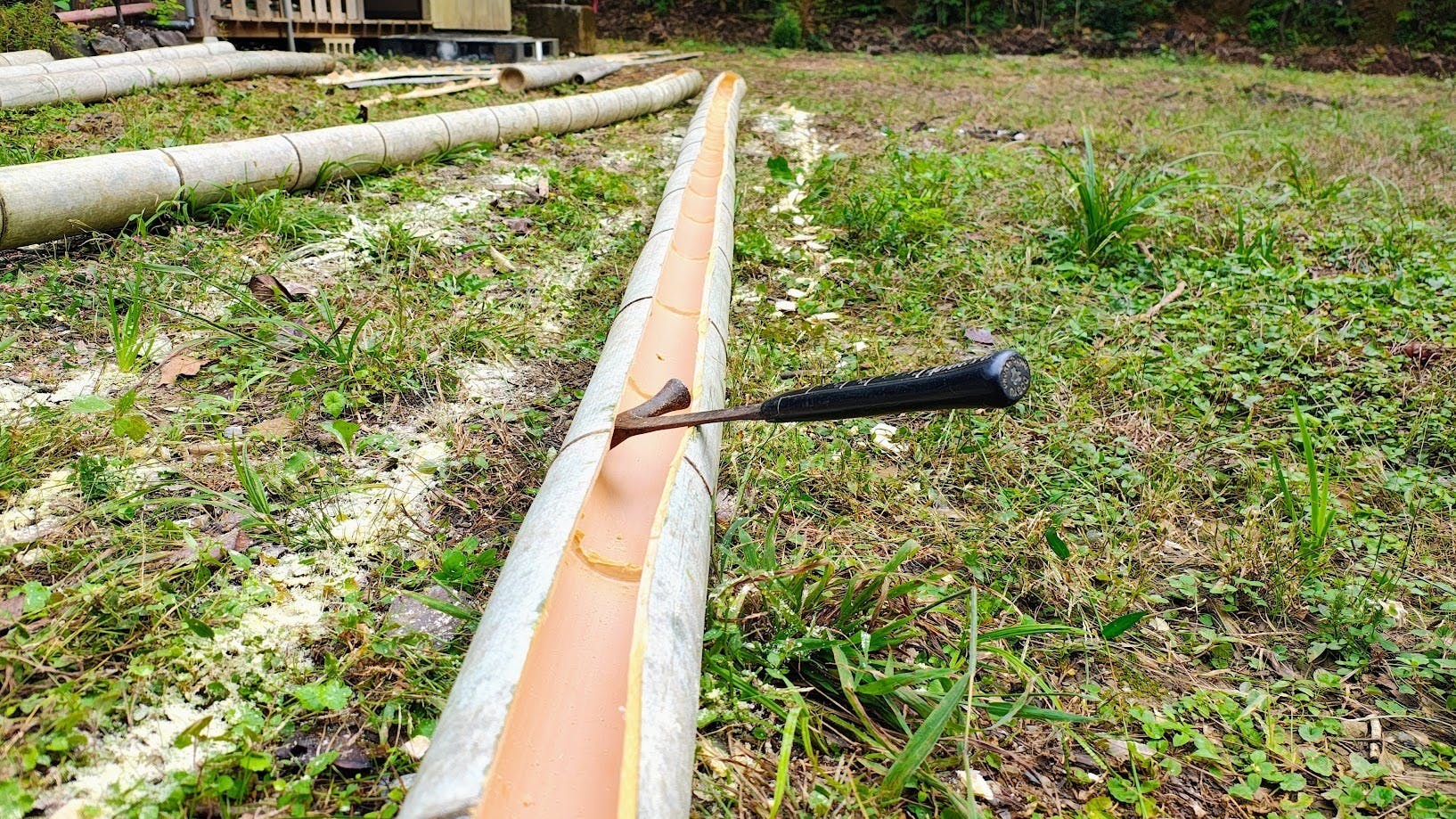 前回、給水器用に伐り出した竹の3倍くらい太い竹です!
