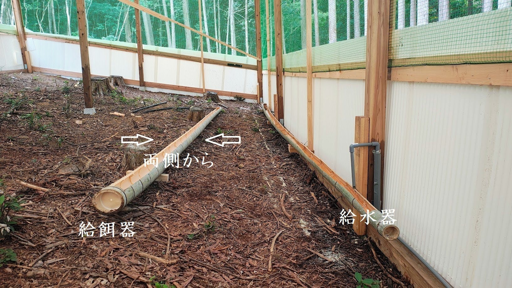 鶏舎に2箇所据えて給餌器づくり完了しました~!