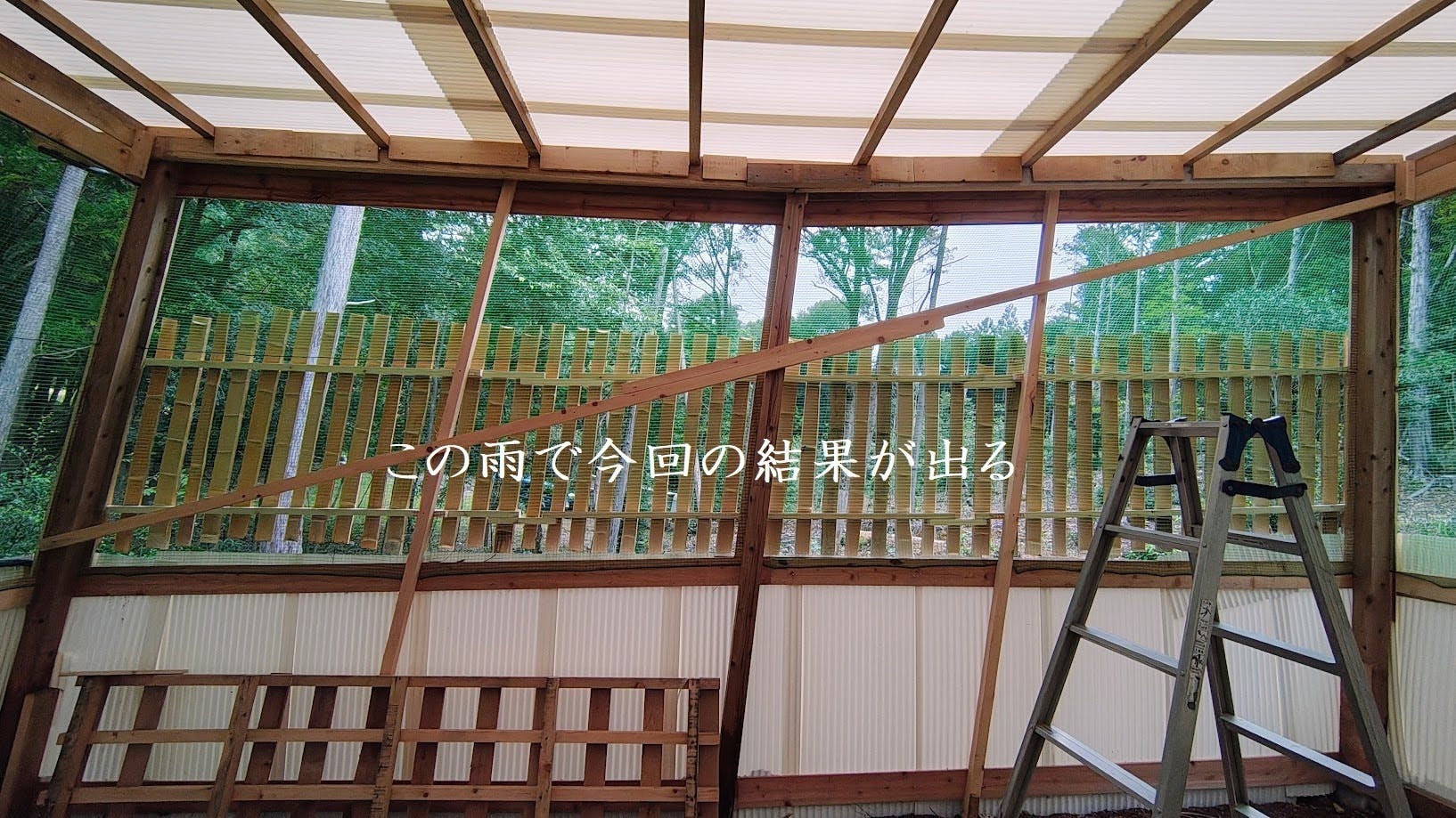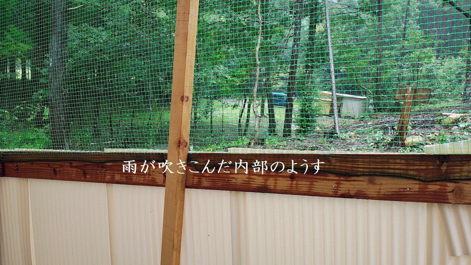 鶏舎南北の開口部から、内部へ雨が吹き込むという