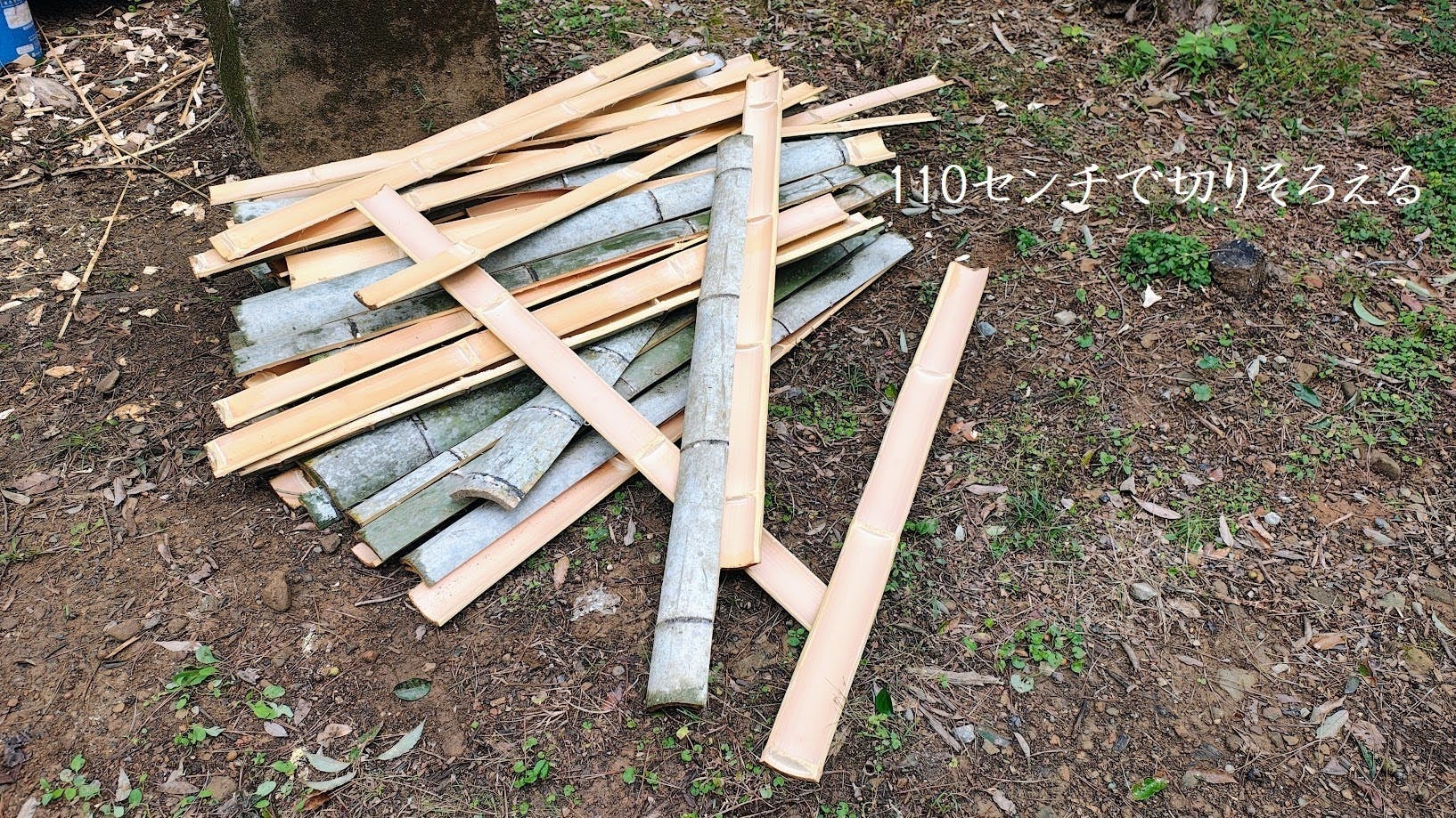 伐って間もない竹はビスを打ち込んでも割れません(^^♪