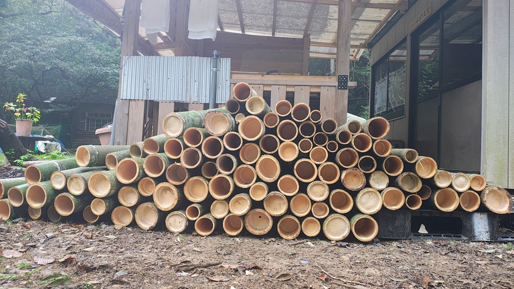 幸いにも、前日までに搬入した竹の山があります(^^♪