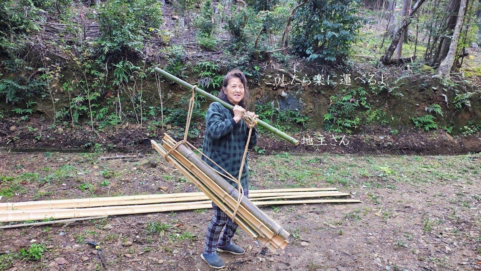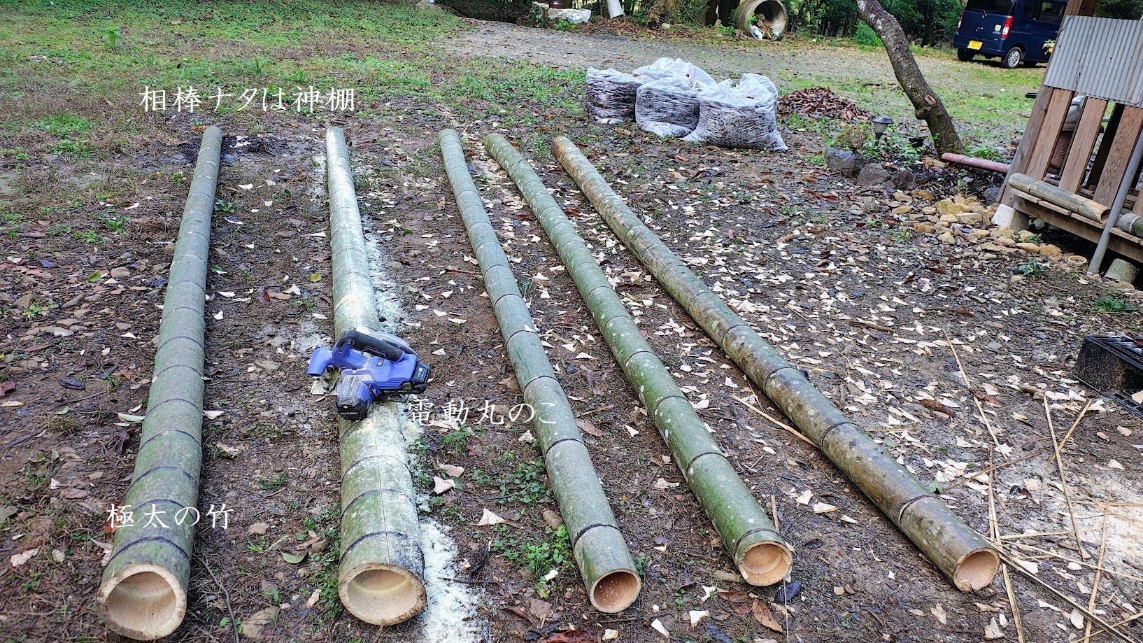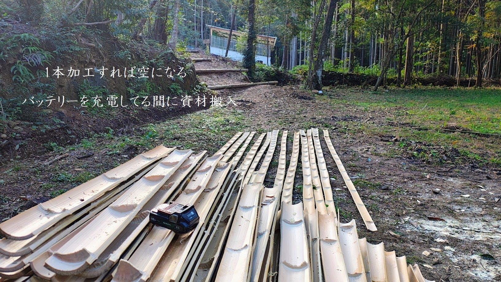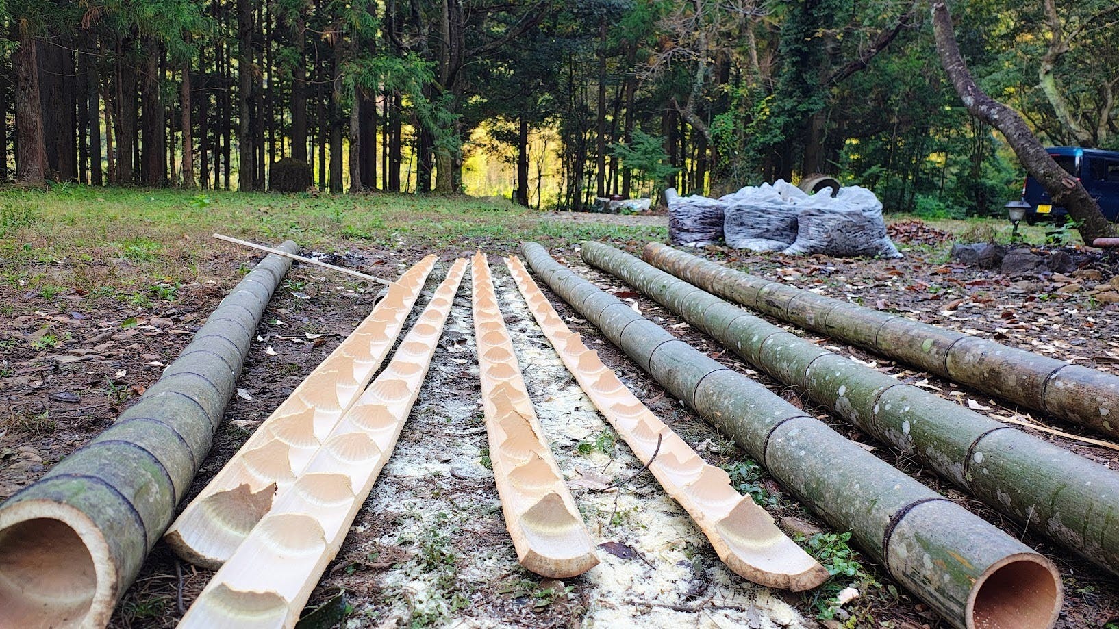 5メートルの極太の竹を5本 4分割していく訳ですが、