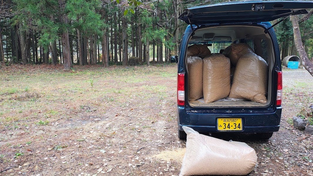 もみ殻はご自宅の納屋の外や田んぼに野積みしてあるため、