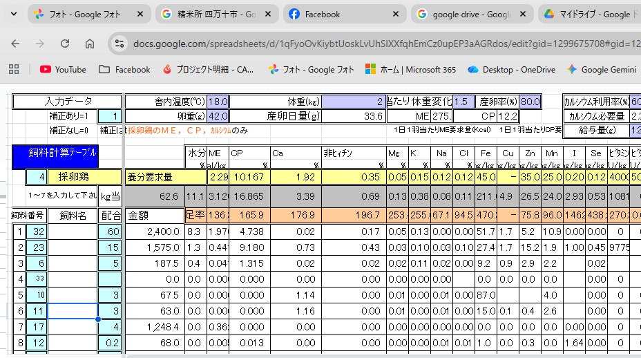 毎日栄養計算を行い鶏さんたちに与えて