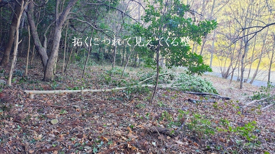雑木を伐りながら、