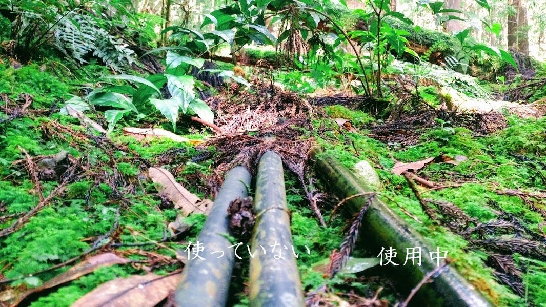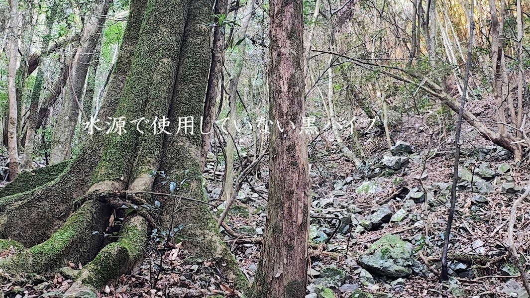 水源付近へ到着しますと、3本の黒パイプがあります。