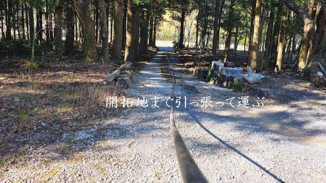 数百メートル分の黒パイプを開拓地まで引っ張って・・・