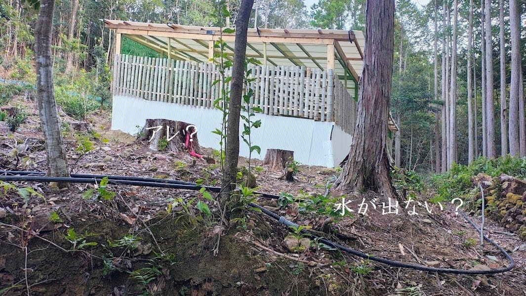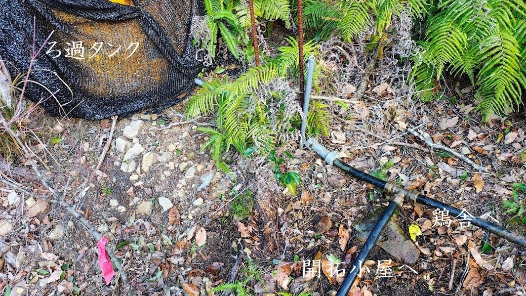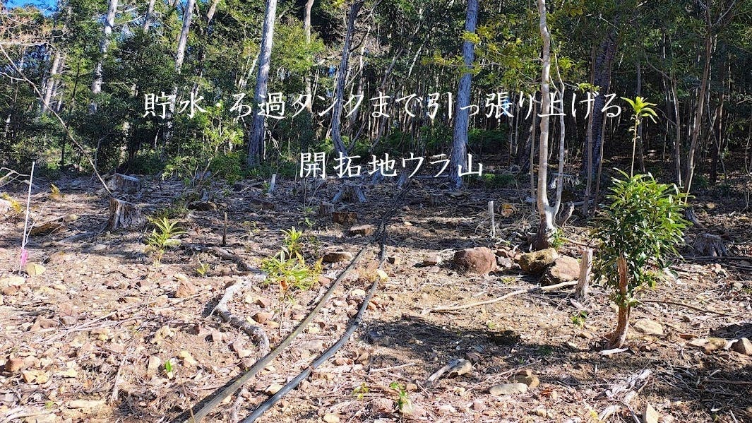 開拓地ウラ山の貯水・ろ過タンクまで引っ張り上げます。