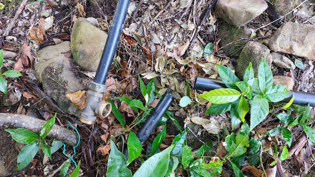 前日、水源の山から持ち帰った数百メートルの黒パイプ