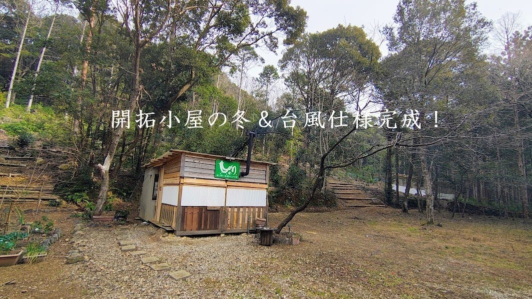 日暮れ前、開拓小屋西側の冬&台風仕様 完成しました!!