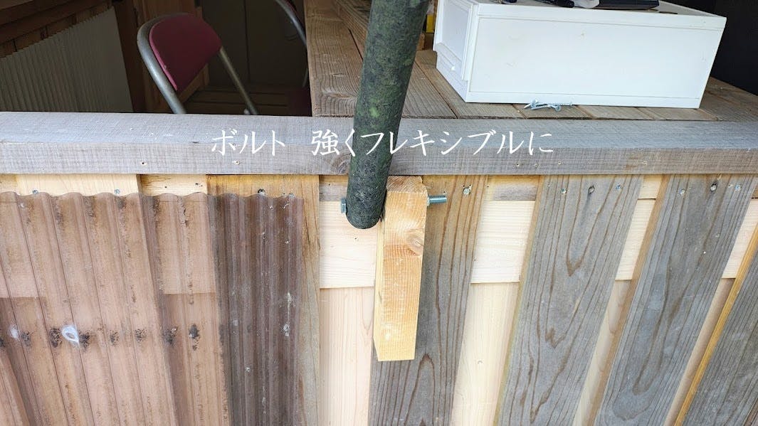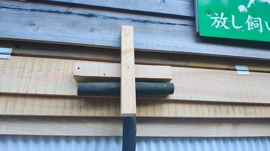 ひさし屋根の支え兼かんぬき棒として使用するため