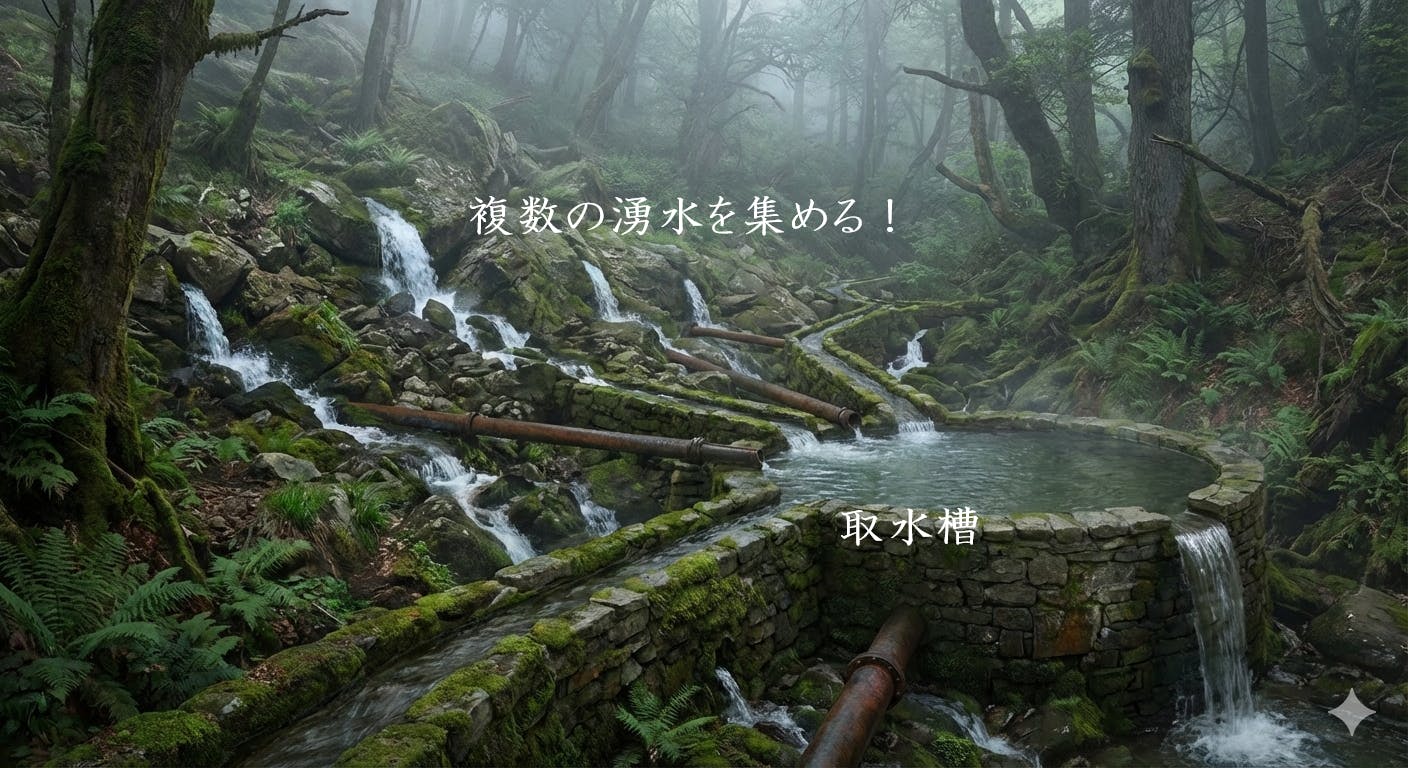 複数の湧水を一つの貯水槽へ集めて開拓地へ供給するほかない!