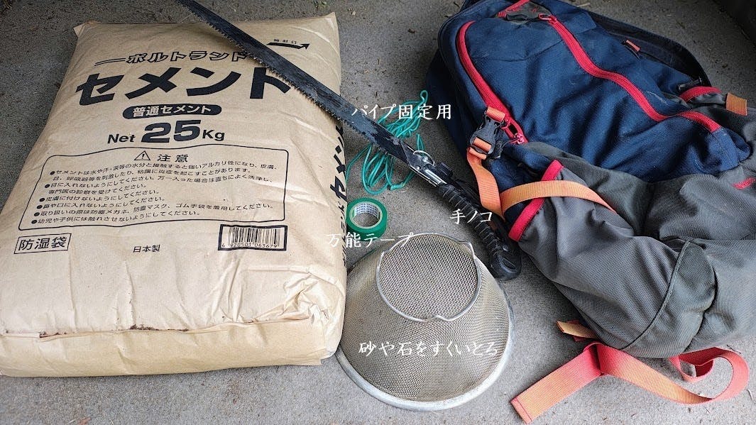 針金(増水時にパイプが流されないよう固定するため)