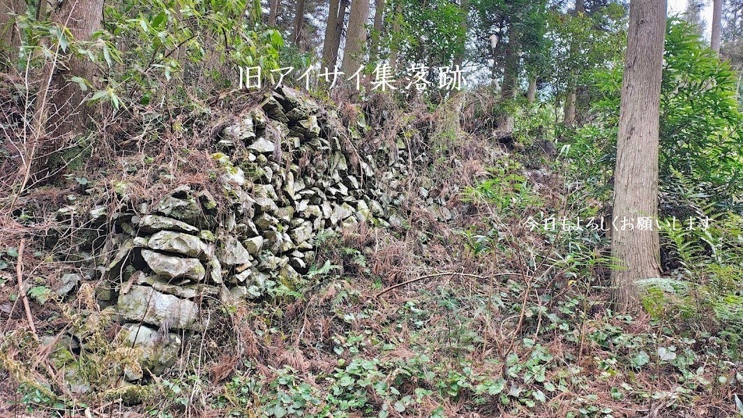 本格的な山道に入る前、旧アイサイ集落跡を通りかかります。