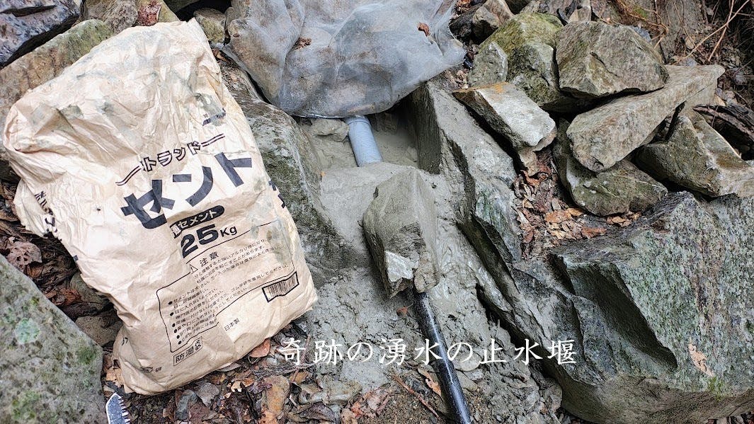 最後に「奇跡の湧水」の場所に止水堰を設けて、