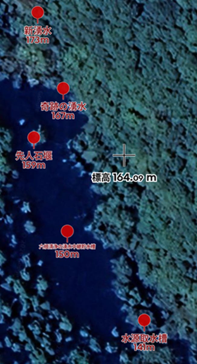 標高 167m:【奇跡の湧水】(浅い谷の貯水槽)