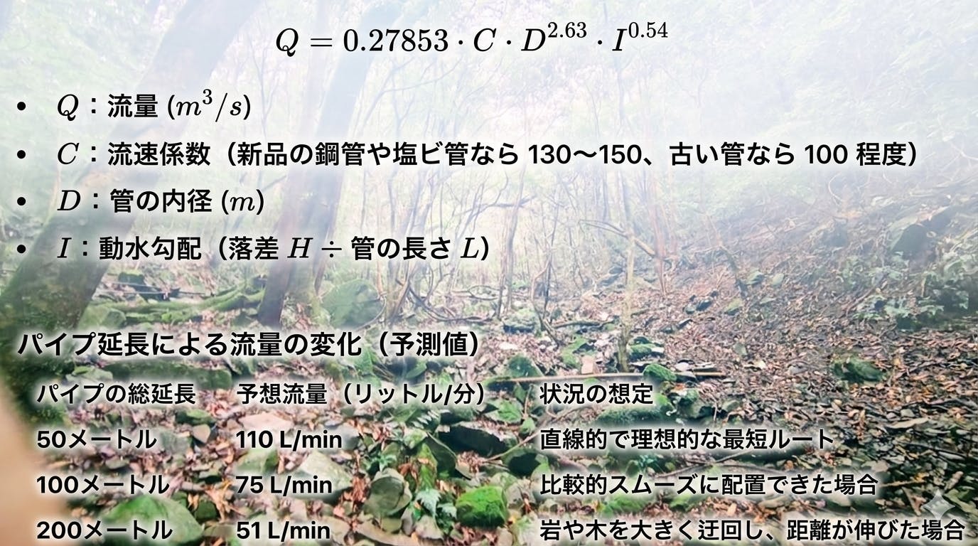 「六根清浄の中継貯水槽」まで、地形の勾配のみを利用して届ける作業です。