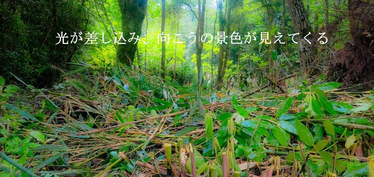 鬱蒼と絡みつくイバラや蔓、背丈を覆い隠すほどの笹や竹林。