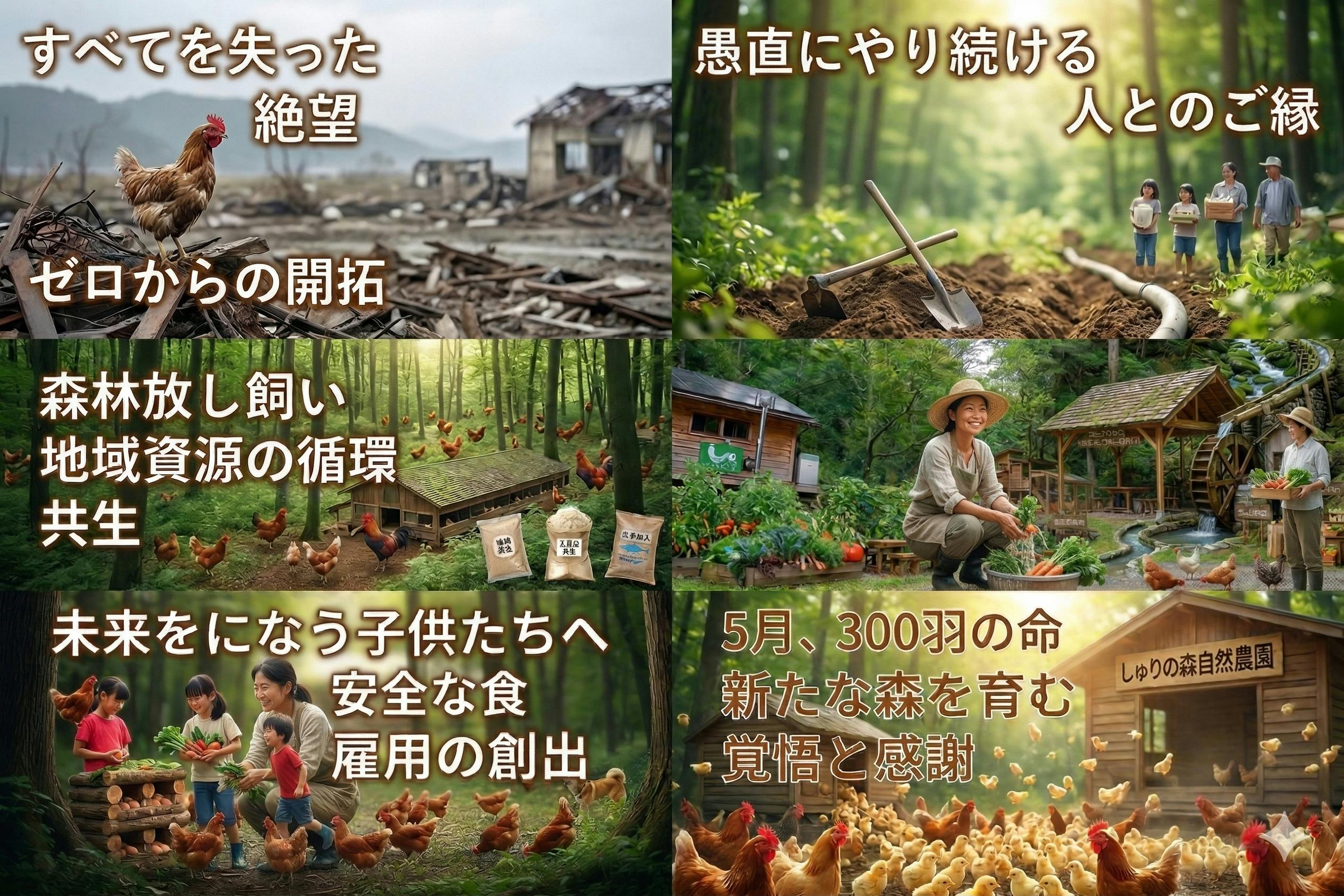 鶏さんたちが森を自由に駆け回り、その生命の営みが豊かな土へと還り、