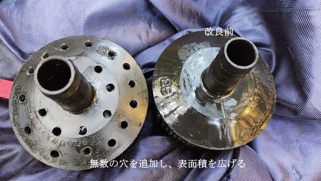 市販・自作のストレーナーのままでは吸水面の面積が小さいため、局所的に強い吸引力が働いてしまい、落ち葉がぴったりと張り付いてしまうのです。