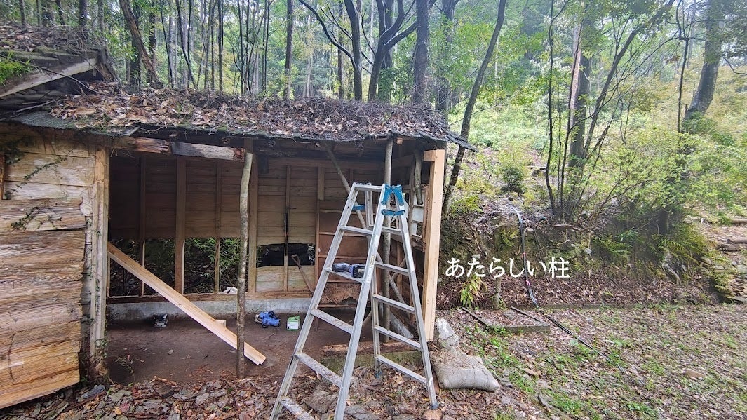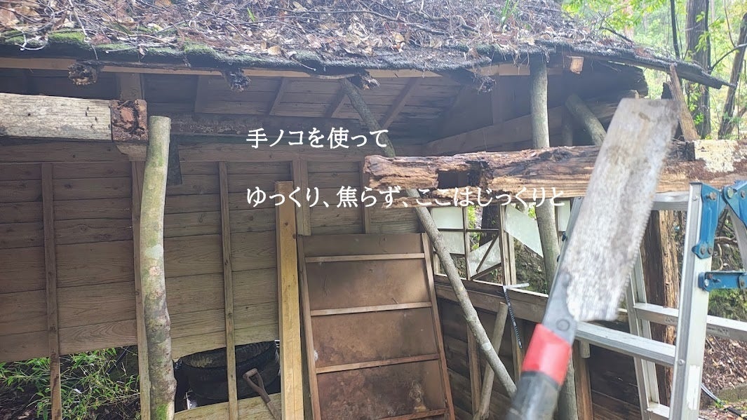 今回は、旧校舎横にある「朽ちかけた小屋」の改修工事の模様をお届けします。