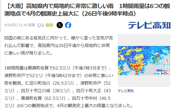 周辺の地域でも4月の観測史上最大を記録するほどの