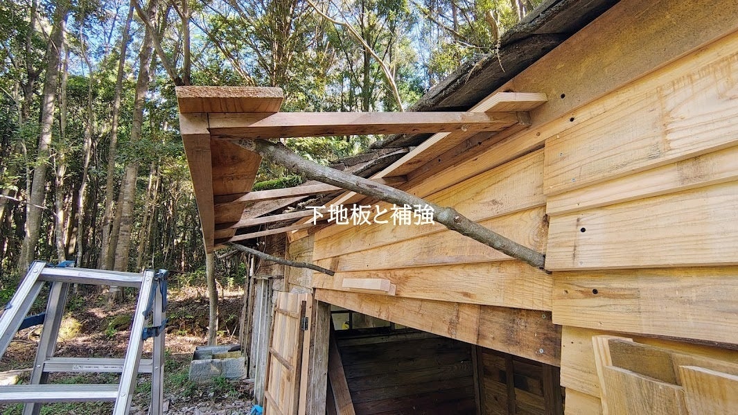 木枠の強度を上げ、トタンを打つための下地となる板をしっかりと貼り付け。