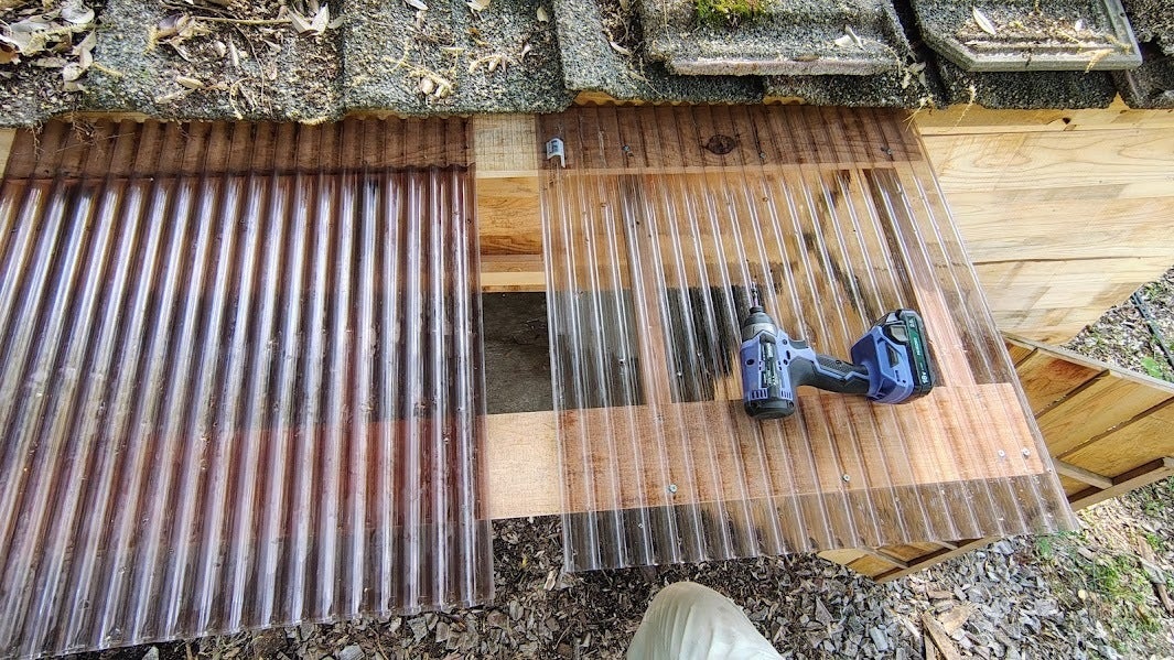 こちらについては、開拓小屋のひさし屋根を閉める時と同じ