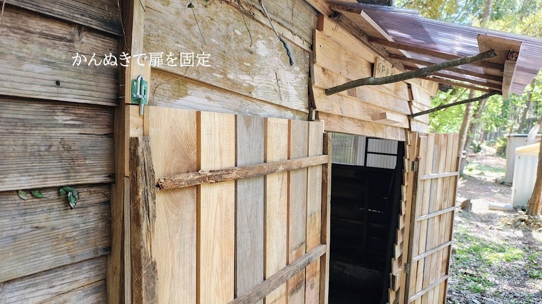 「待てよ…たしか開拓小屋のビスの空箱の中に、古いかんぬきが2つあったな…」