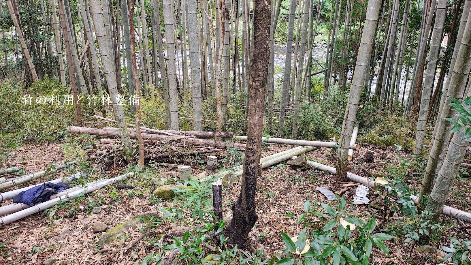 みなさん おはようございます!雨の吹き込みを防ぐために設置した鶏舎南北に設置した面格子が予想以上に効果があり、東西箇所にも設置していくことにしました。台風対策と野生動物の侵入防止にもなりますからね♪ということで、第2開拓地の竹林へ!前回竹を伐り出した時もそうだったのですが、密集した竹や立ち枯れた竹が引っかかり倒れません・・・。密植した竹を伐っては、抱えて下まで引っ張り倒し・・・1本伐れば、2本の枯れた竹を伐り倒し・・・株元に敷いていくことで、土壌流出を防ぎ竹林の適度な樹間スペースを保つようにしていきます。それを繰り返すことで、だんだん伐り出しもしやすくなりやがて、竹林の整備にもつながっていきます。とはいえ、広大な長年放置された竹林・・・竹を1本伐り出すにしてもなかなか骨が折れる作業ですが、里山の環境を守るにはやるしかない!しゅり(守里)の基本理念ですね。今回伐り出して、開拓地まで持ち帰った竹は20本足らずハア・・・1日頑張ってもこれだけか・・・鶏舎東西に必要な資材本数には、全然足りません!どんどん竹を有効利用し、同時に整備していくことで、健全な竹林に育てていこうと思っています。竹林整備を、いっぺんにやろうとすれば途方もなく感じますが必要なものを活用しながらであれば、「一石二鳥」です。