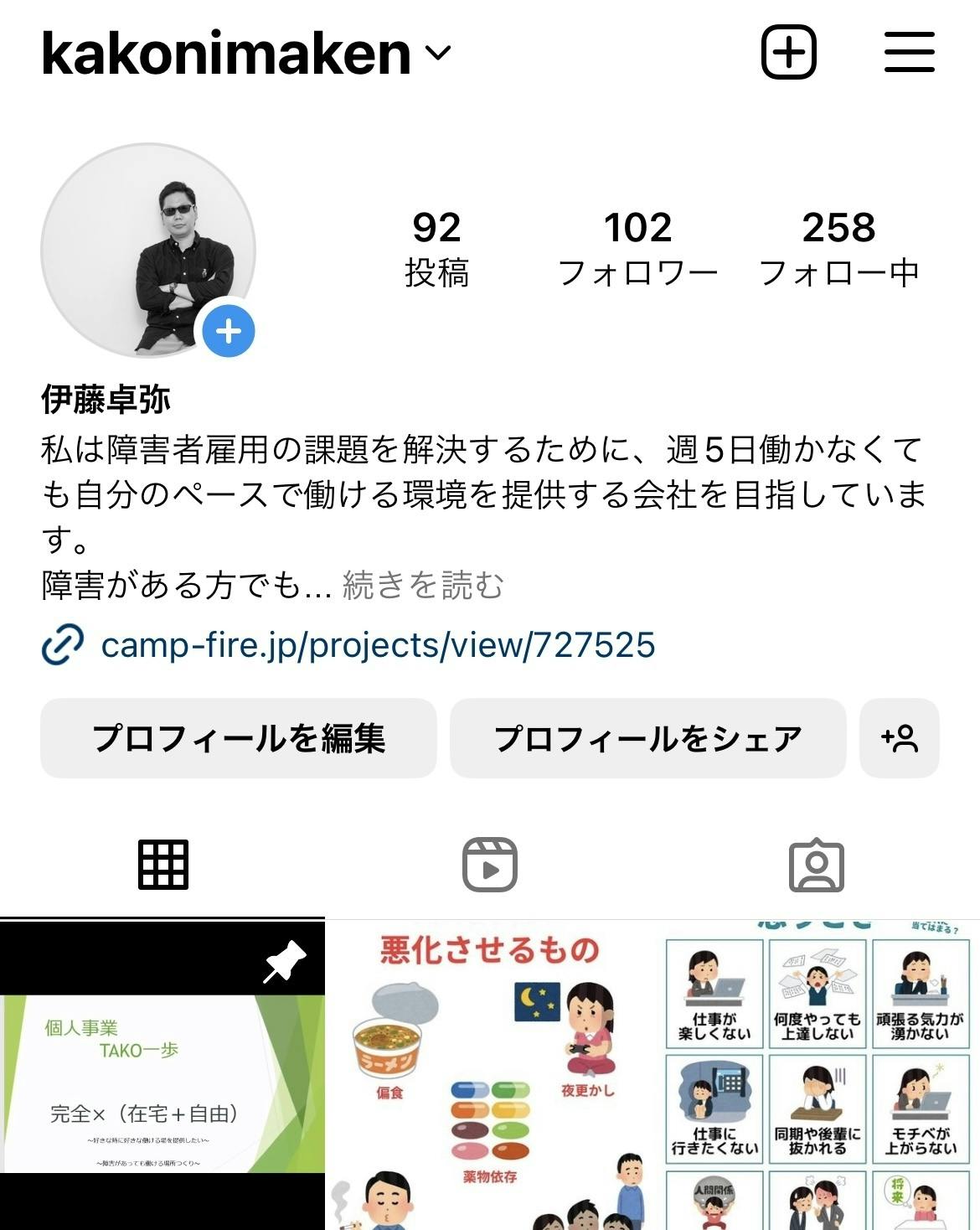 2023/12/31 18:28今年一年ありがとうございました(はじめめ3週間も経ってませんが。。)今年のできる種まきは終えた感じです。今はインスタを使い障害の特性などをアップしてるのでぜひお手隙の際などてみてください。来年からは少しずつ本格的に動けるようプランの練り直しなどを行います。あくまで今までは認知などしか動いてませんでしたが動いていきますので応援よろしくお願いします。 もっと見る