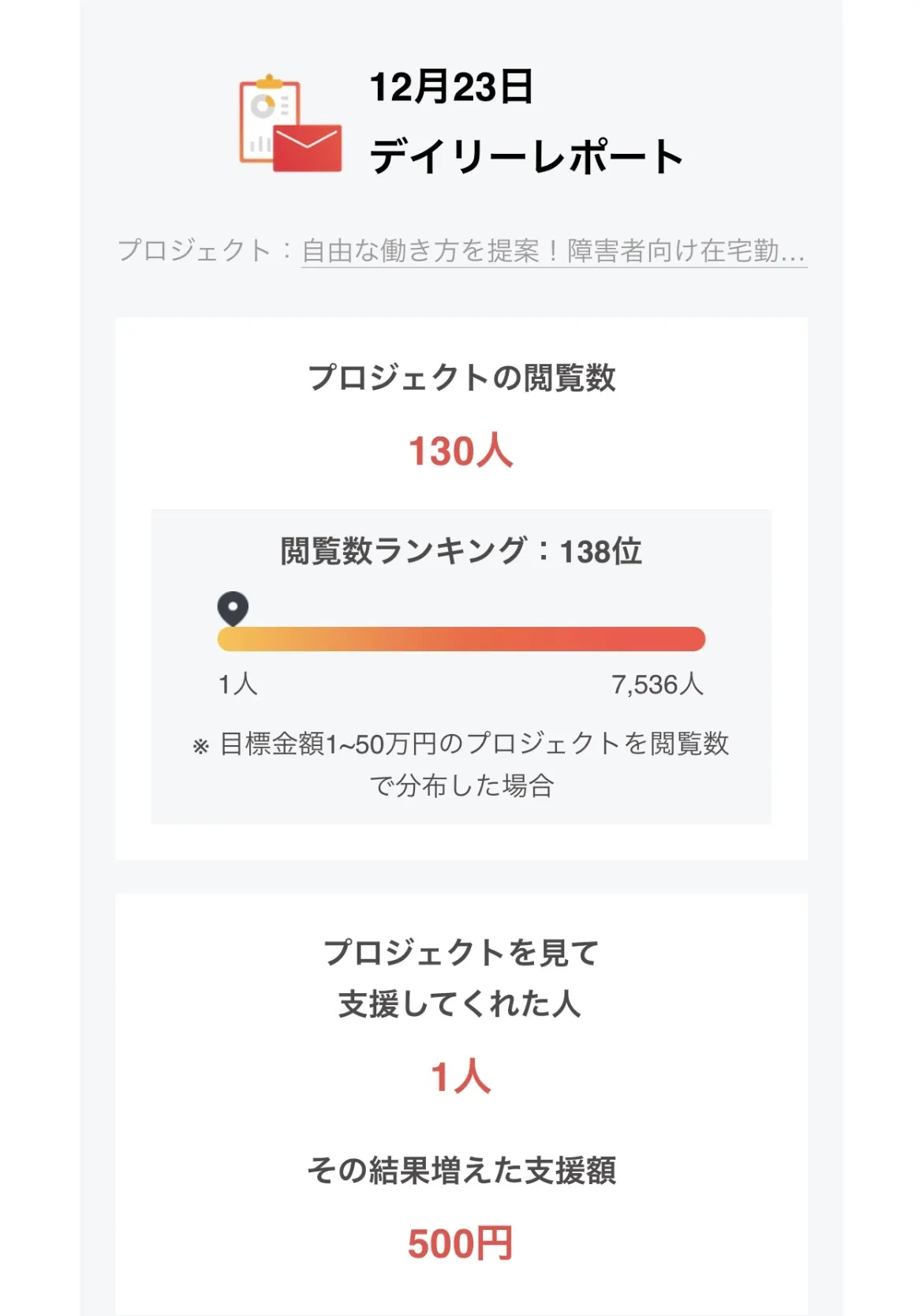 初めての支援を頂けました!