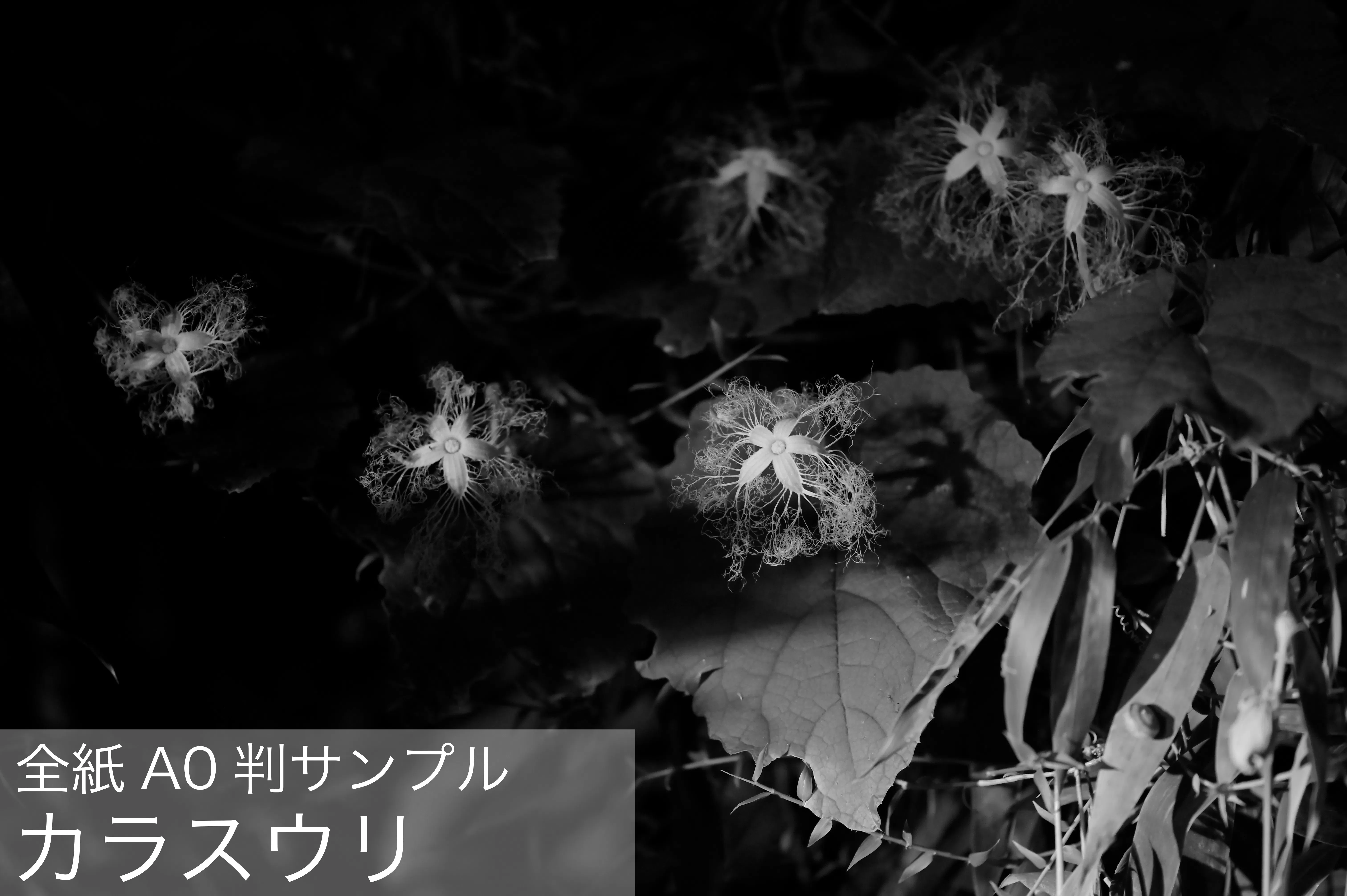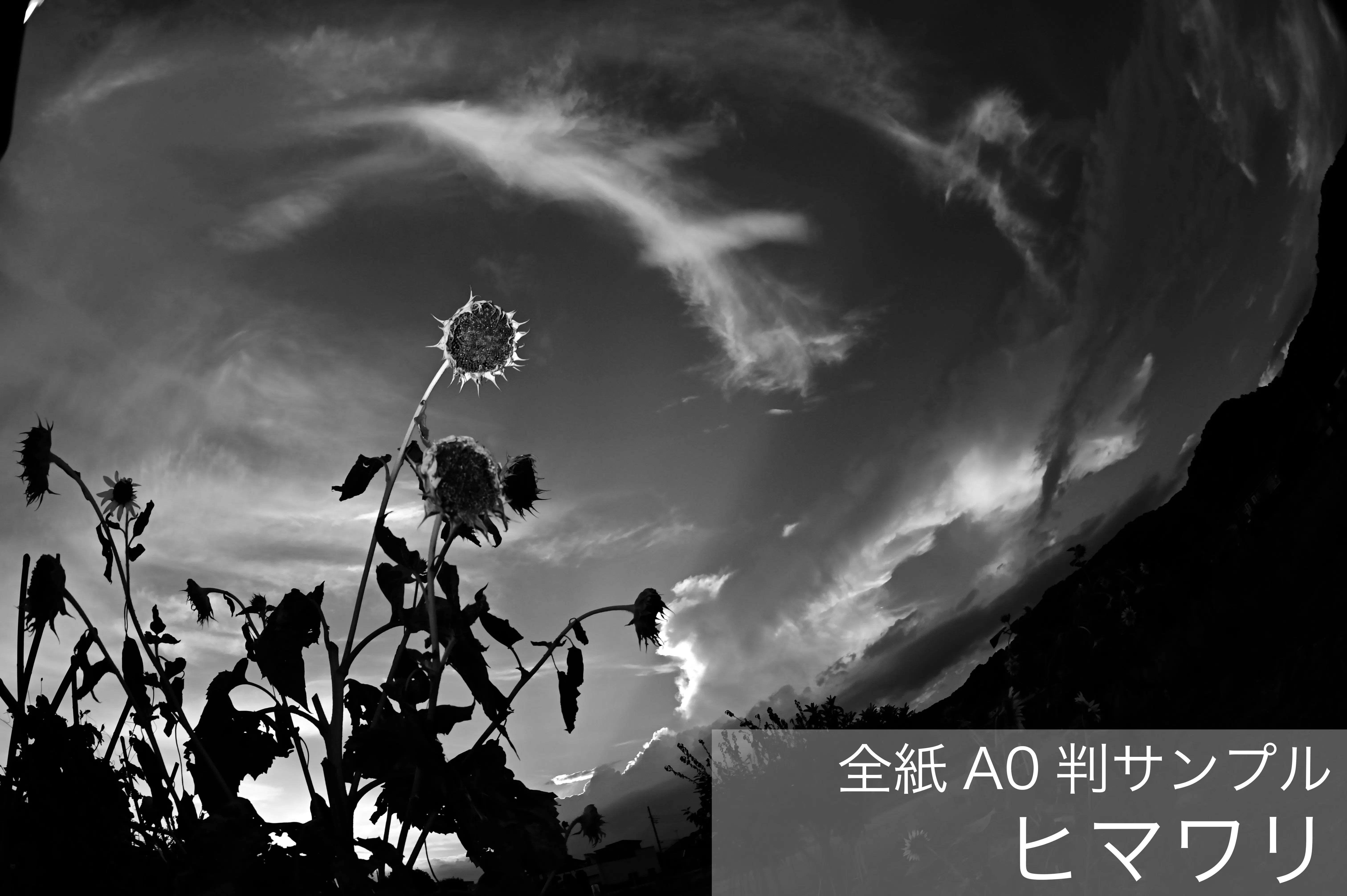 今回、ライフワークとして撮りためた四季の草花の姿を、是非ともこだわりのイギリス製 白黒(モノクローム)銀塩印画紙によるデジタルプリントでお届けしたいというのが、シノキさんたっての希望であります。