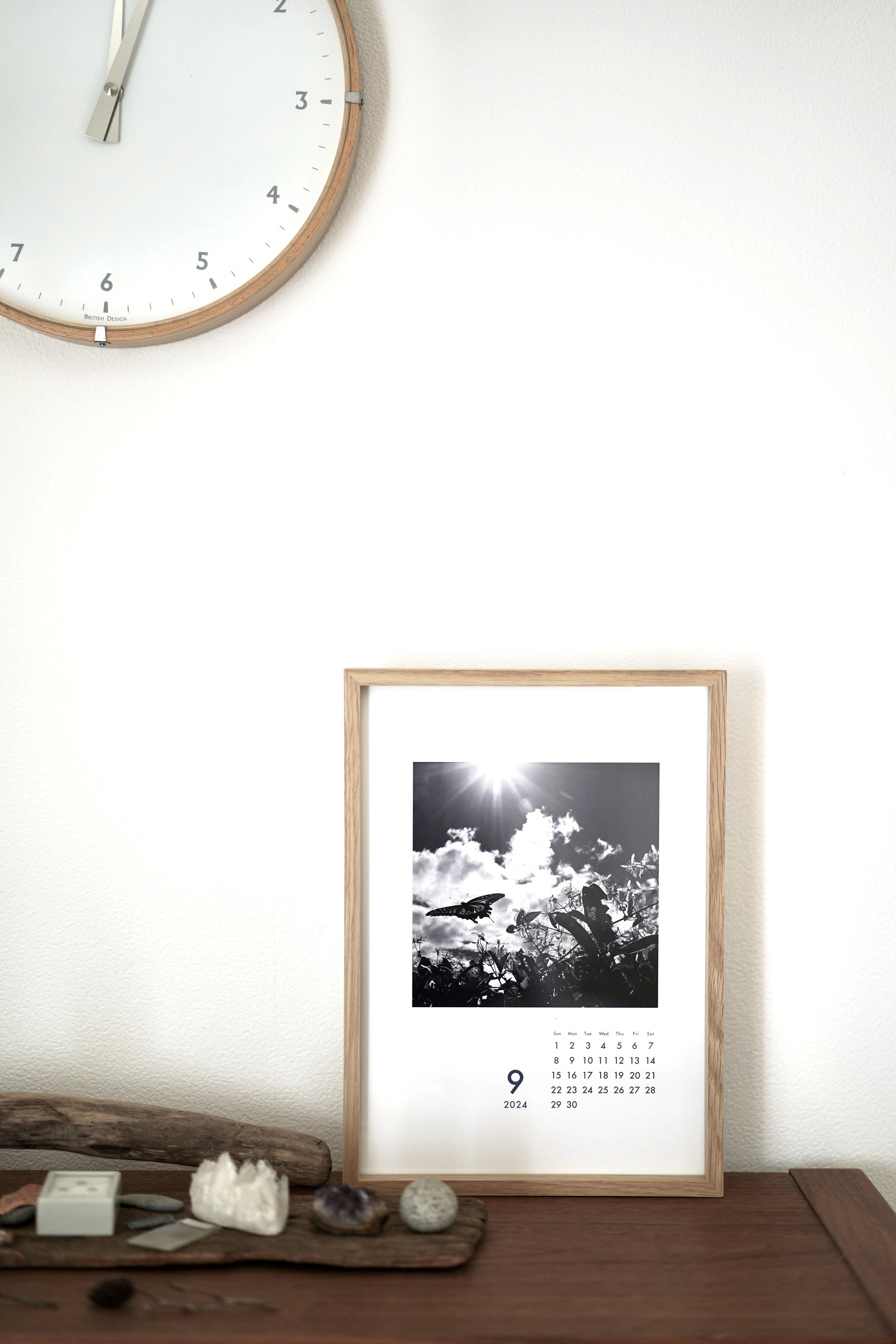 デザイン性が高く、シンプルで、壁に貼ったり、立てかけたり、 フレームに入れたりいろいろな飾り方が楽しめるシートカレンダーです。