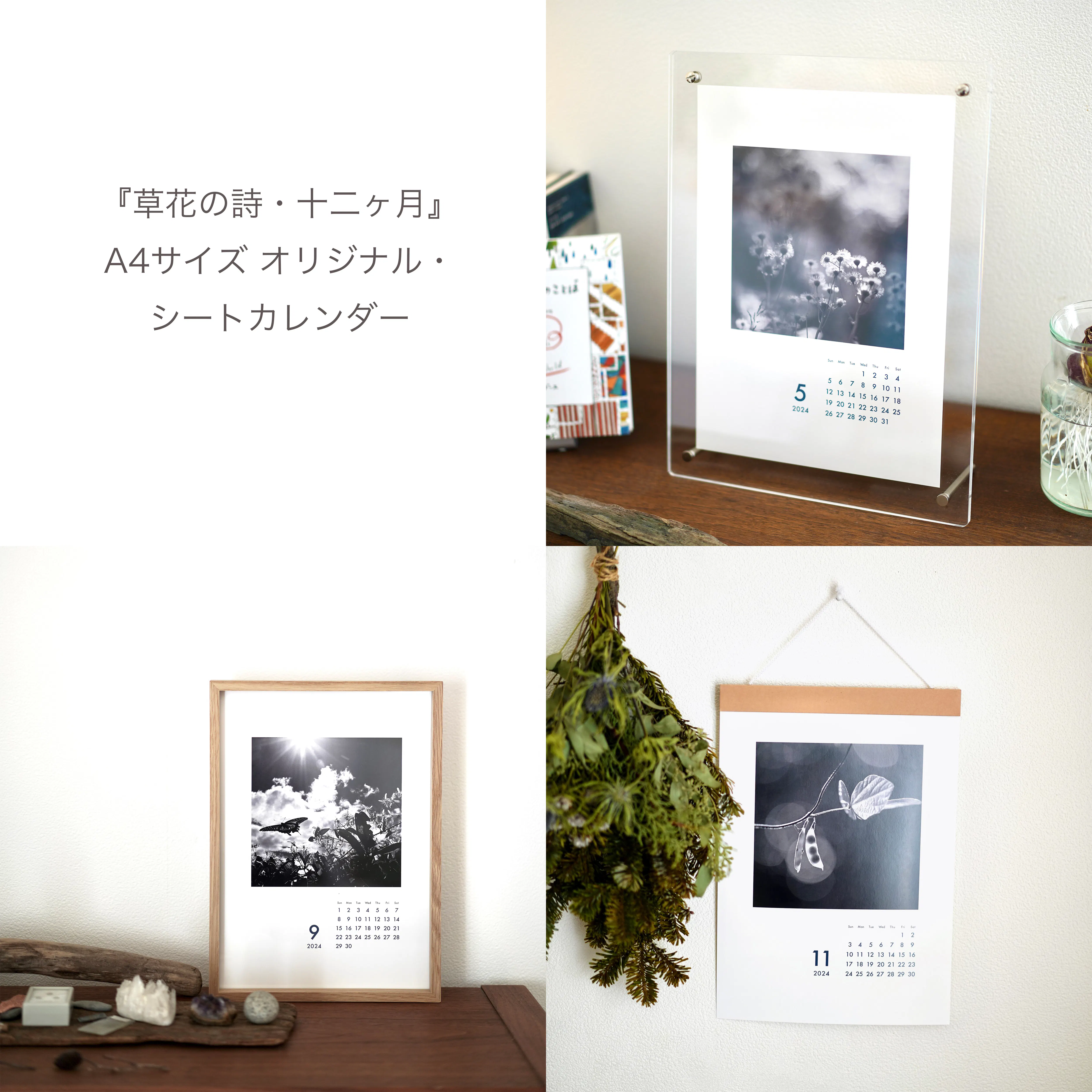『草花の詩・十二ヶ月』で展示された各季節の写真を、卓上オリジナル・カレンダーとしてお送りします!