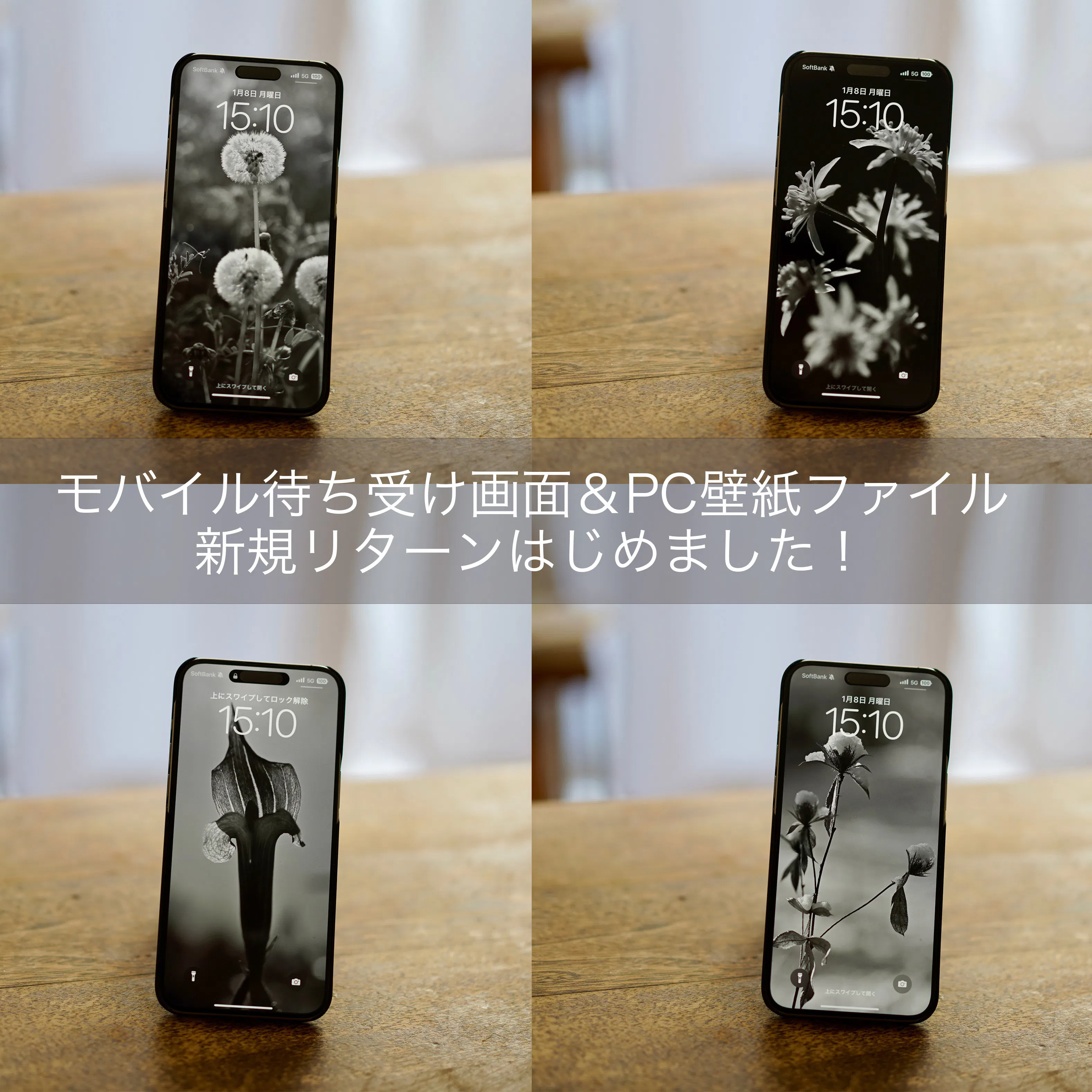 【新規リターン】『草花の詩・十二ヶ月』 のアナザーバージョンによる、スマホ待ち受け用画像&PC壁紙用画像12ヶ月分(合計24枚)パック