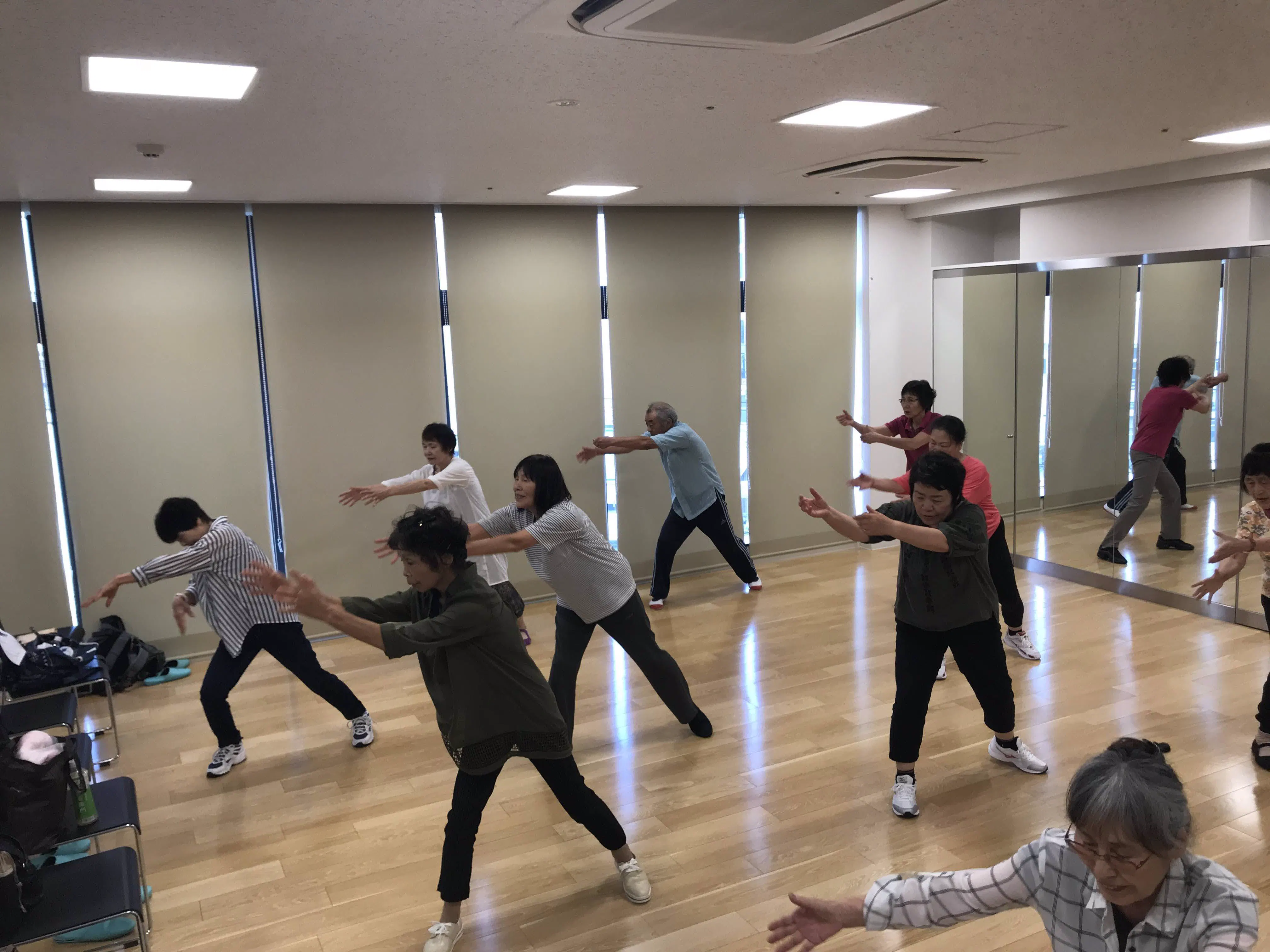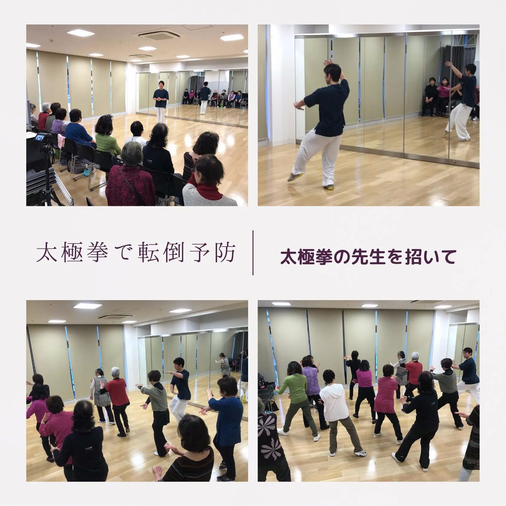 太極拳のような体重移動の動きは転倒予防に良いとされているので、先生を招いてみんなで太極拳をしました。