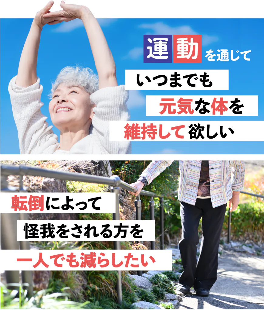 転倒予防する為には、運動をして『転びにくい体』をつくること、そしてそれを継続すること