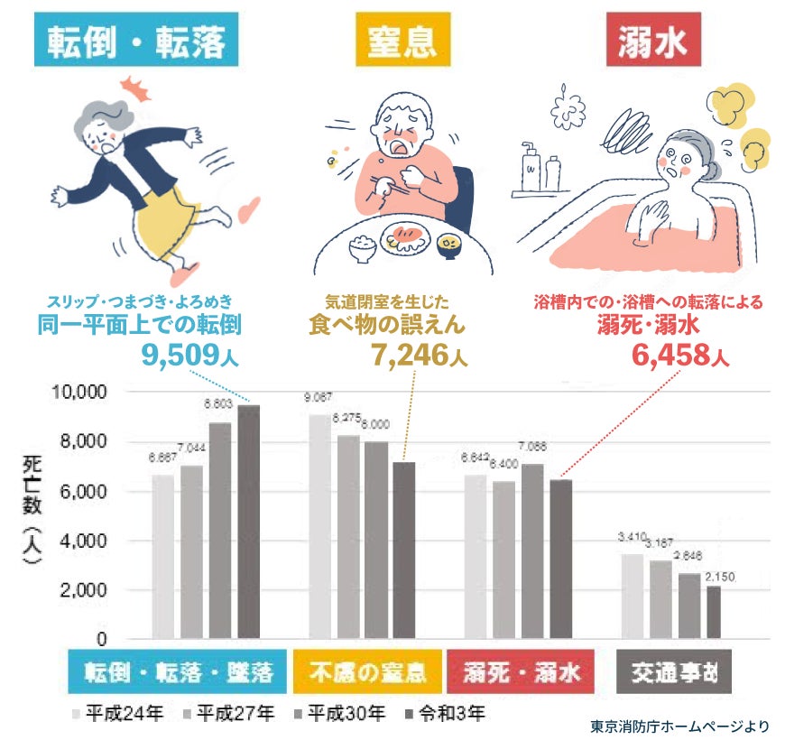 高齢化が進む近年、実は「転倒」が原因で命を落とされる方の数は交通事故の3倍を超え、
