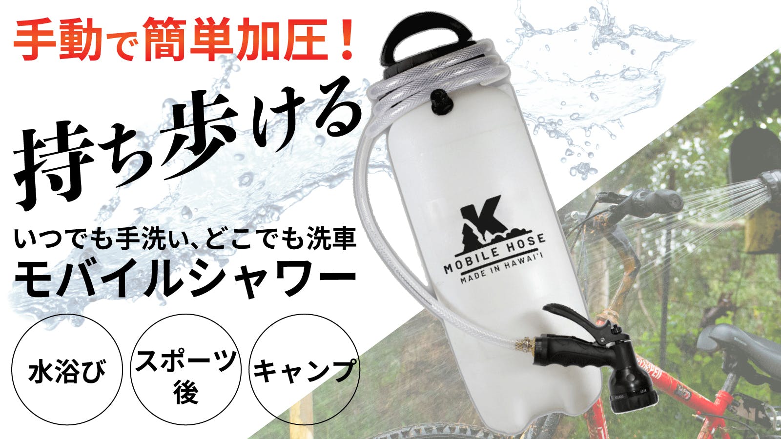 ※タイトル株式会社は本製品(モバイルシャワー)を製造・販売するKaimanu LLC.社の日本における独占販売権を有する正規販売店です。