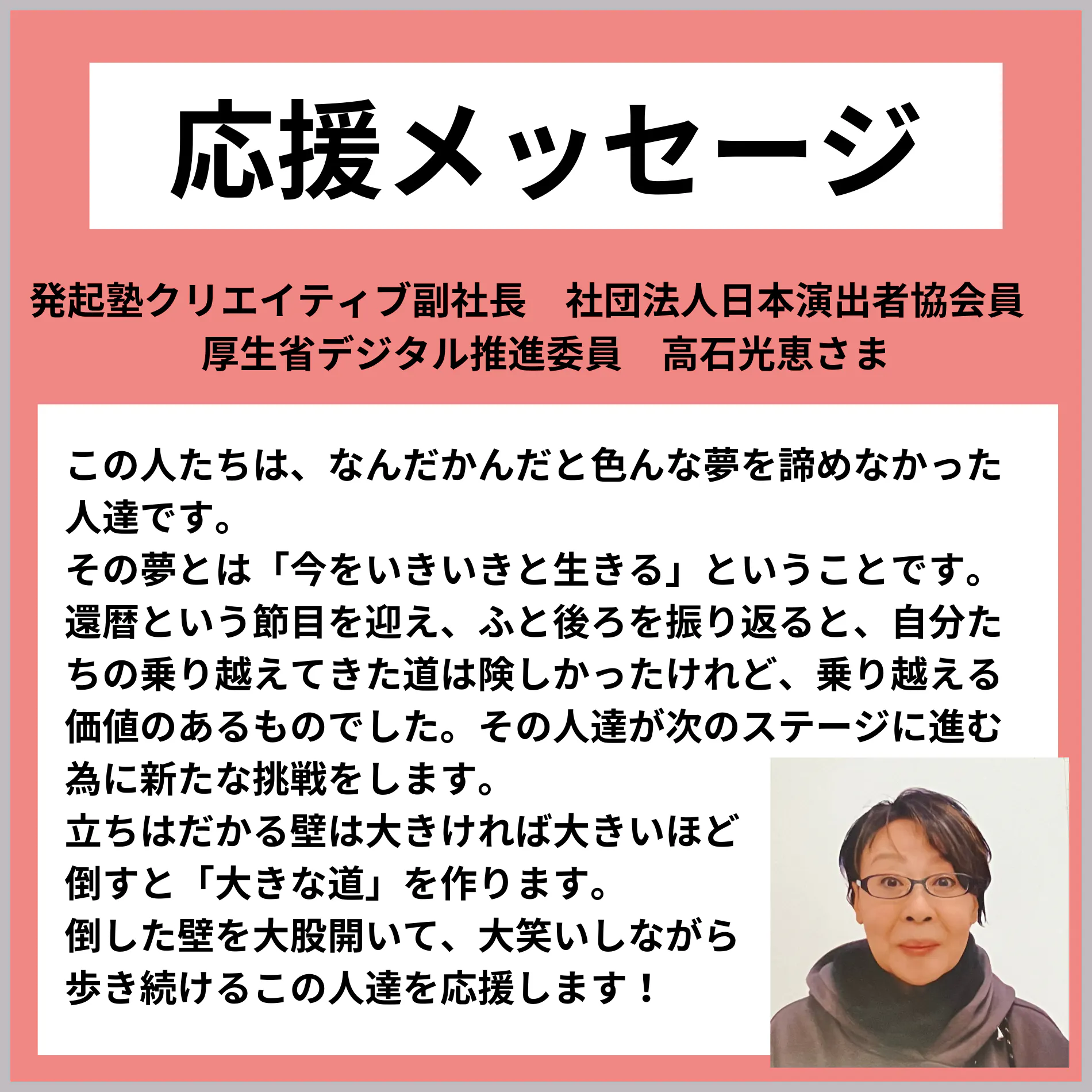 ●「あと10年若かったら」とは言わせない、「今の自分だからできることがある」と、気づいてもらいたい