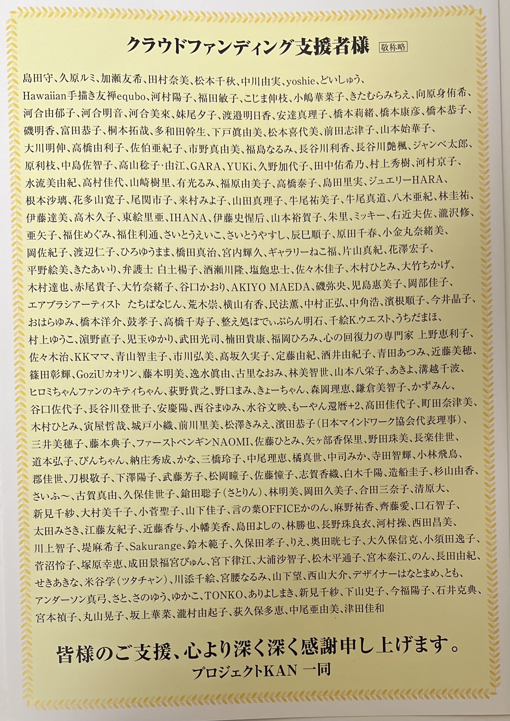 引き続きこのプロジェクトを知っていただけますよう、S N Sなどでシェアしていただけますと助かります。