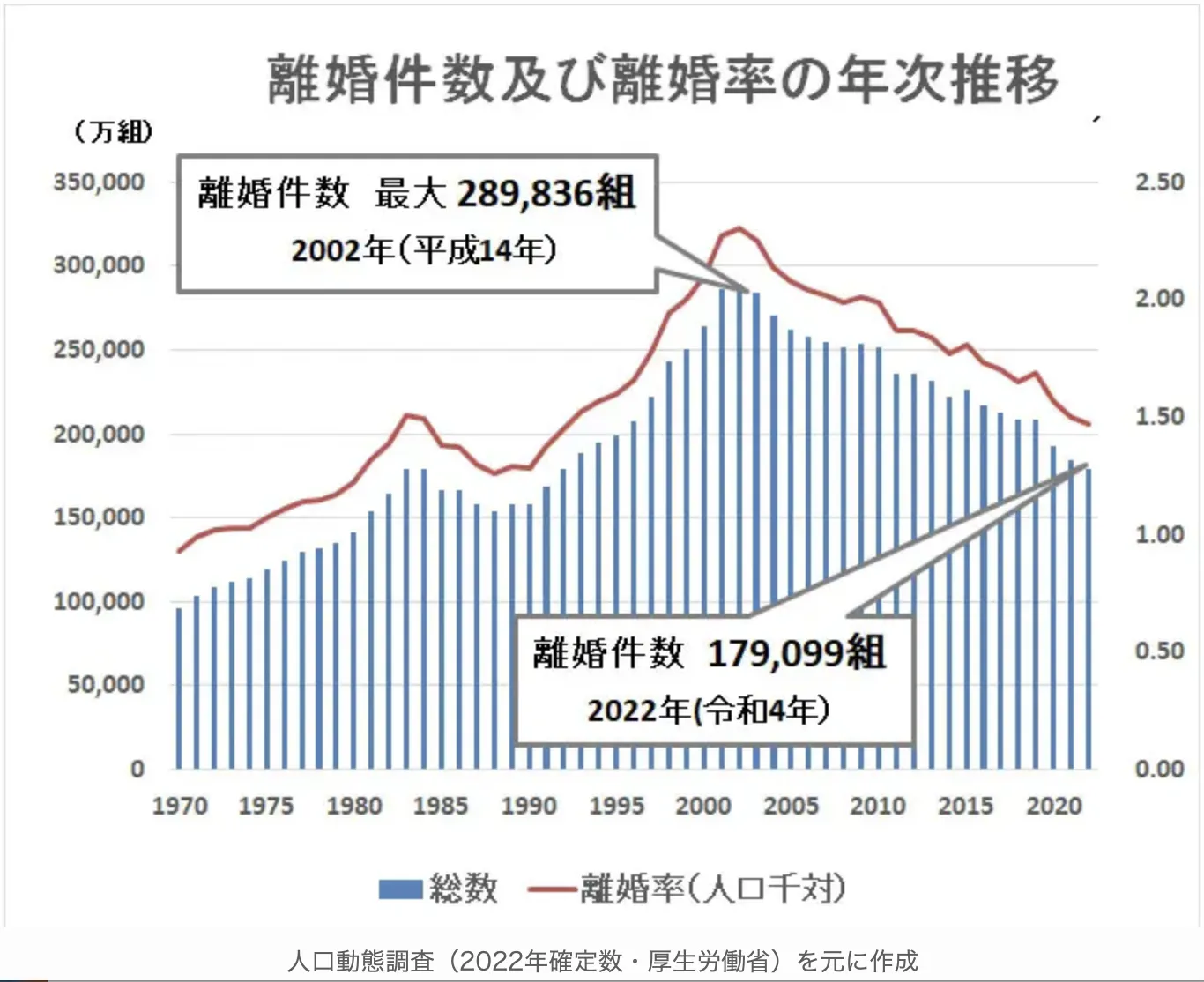 実は離婚率は年々減っている傾向にあるものの、まだまだ17万件と多く