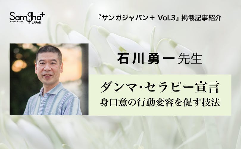 石川勇一先生「ダンマ・セラピー宣言:身口意の行動変容を促す技法」をお読みいただける『サンガジャパン+Vol.3』事前予約クラウドファンディングは、「残り2日」となりました。