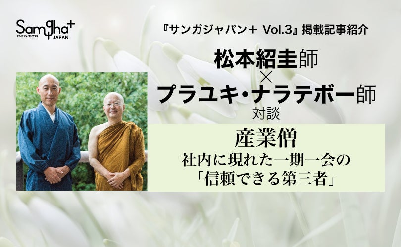 今回ご紹介するのは、浄土真宗僧侶で株式会社Interbeing代表取締役、武蔵野大学客員教授の松本紹圭師と、タイ・スカトー寺副住職の日本人テーラワーダ仏教僧侶プラユキ・ナラテボー師のご対談「産業僧――社内に現れた一期一会の「信頼できる第三者」」です。