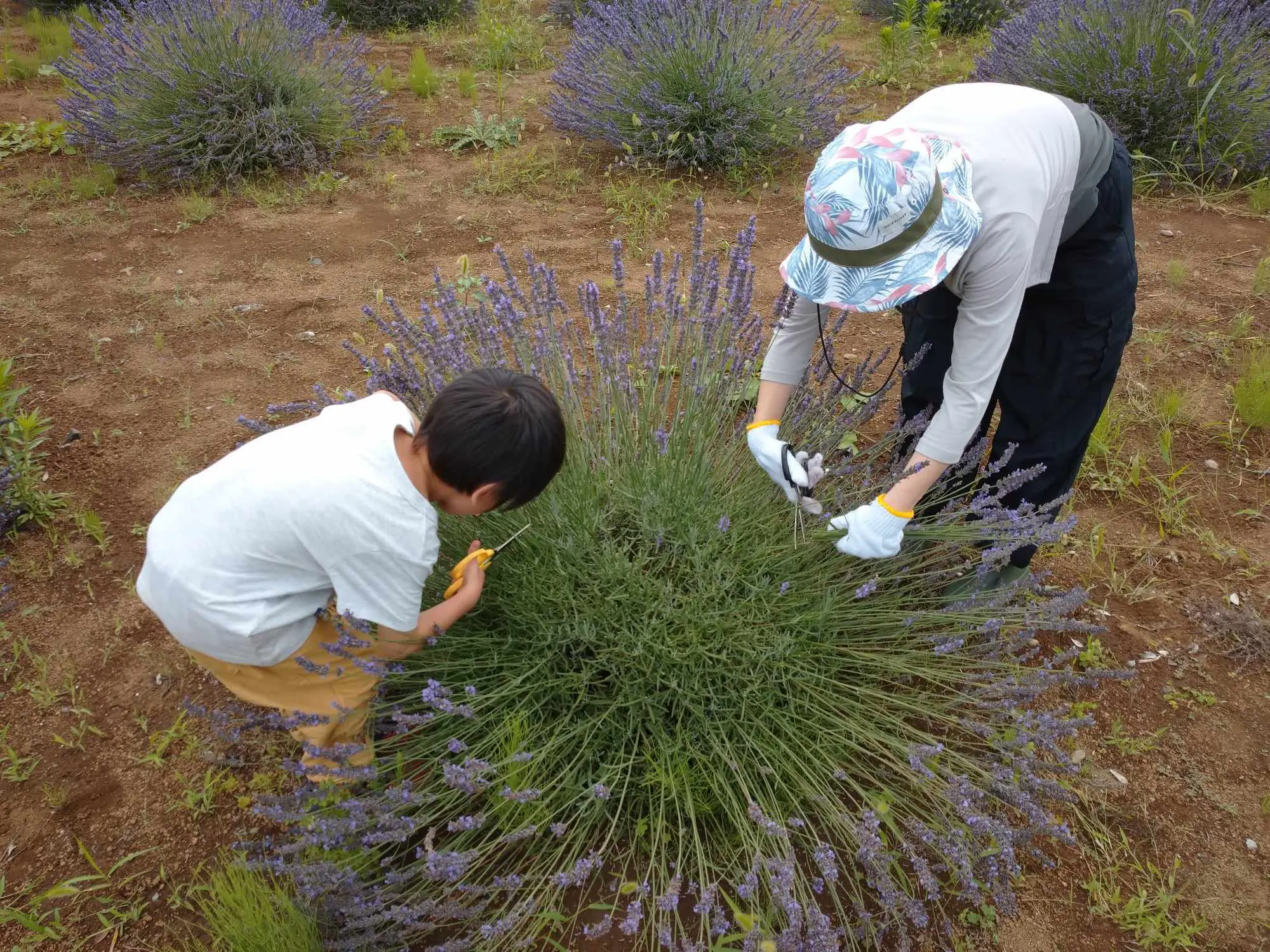 ・ラベンダー収穫、サウナ体験、施設案内、お茶タイムを行います。